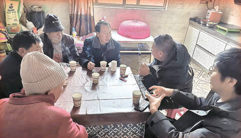 春節(jié)前,郝昕(右一)在村民家里走訪