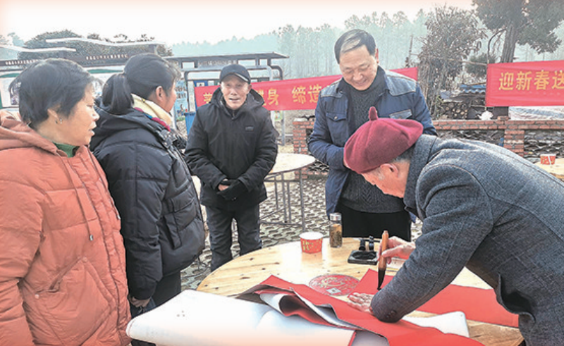 村民們開(kāi)展寫(xiě)春聯(lián)送福字活動(dòng)