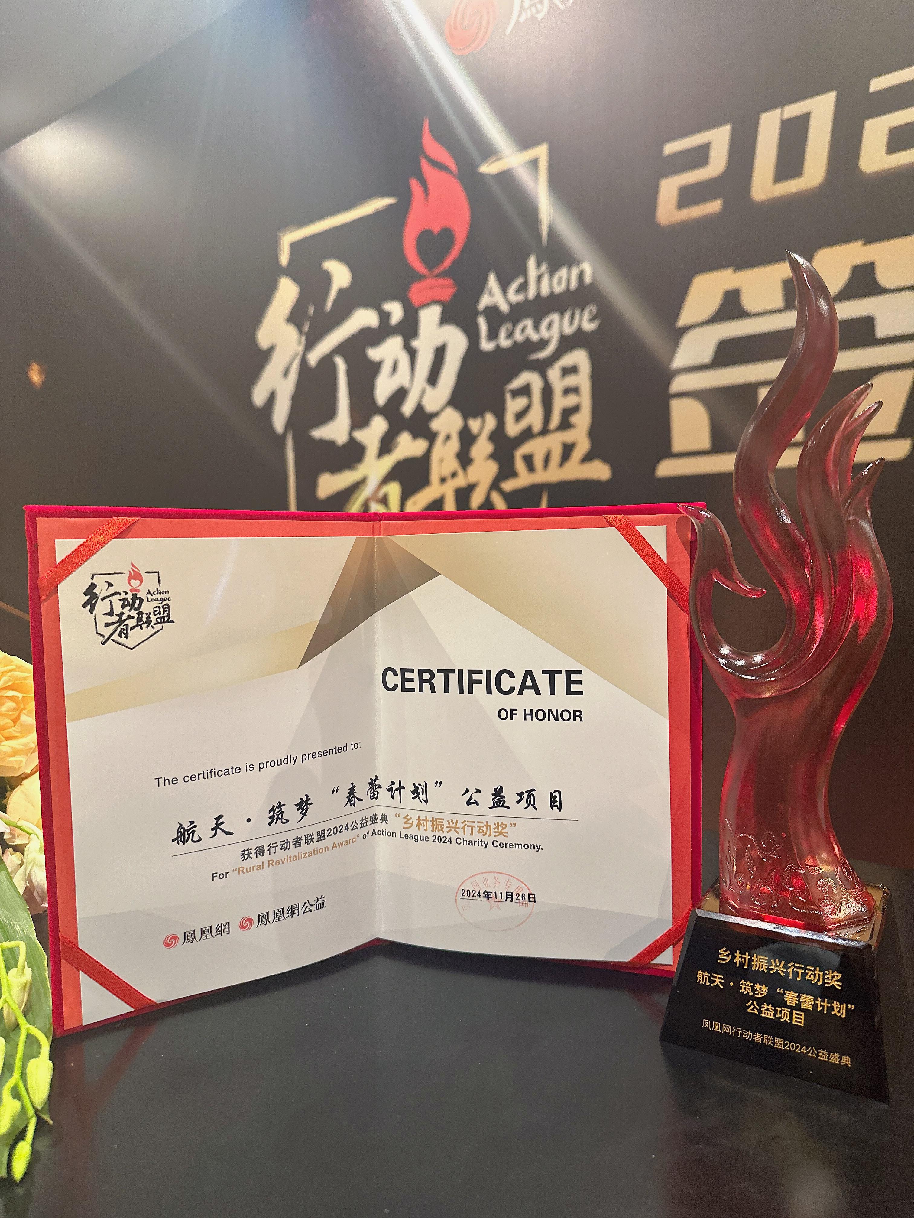 近日,鳳凰網(wǎng)行動(dòng)者聯(lián)盟2024公益盛典在京舉辦,現(xiàn)場揭曉了多個(gè)年度公益榮譽(yù)。航天·筑夢“春蕾計(jì)劃”公益項(xiàng)目榮獲“鄉(xiāng)村振興行動(dòng)獎(jiǎng)”。