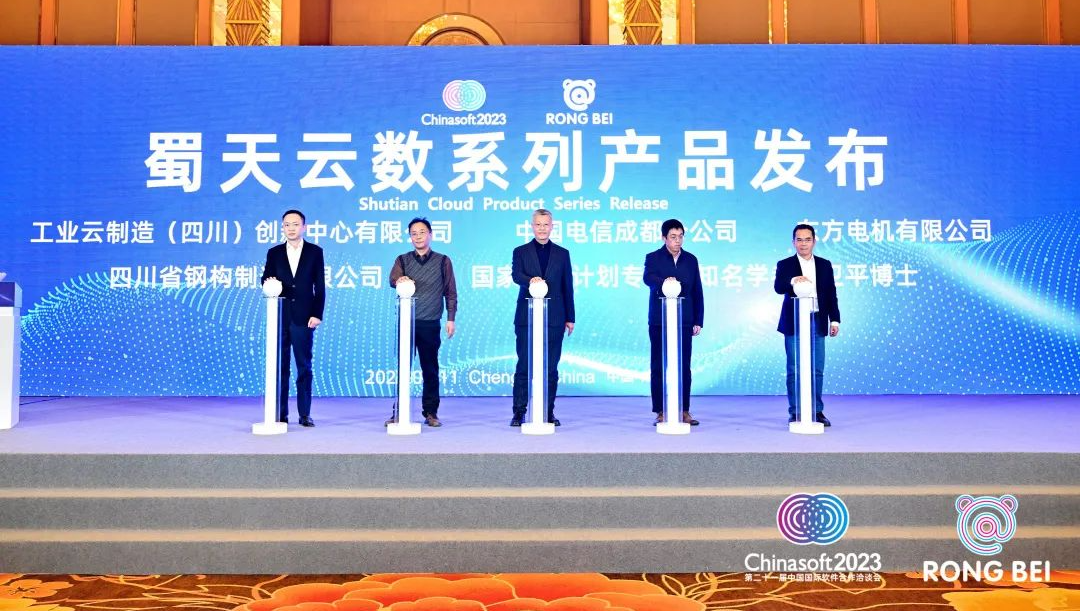 會上,由中國航天科工航天云網(wǎng)四川公司、中國電信成都分公司、東方電機有限公司、四川省鋼構(gòu)智造有限公司、專家吳衛(wèi)平博士共同發(fā)布“蜀天云數(shù)系列產(chǎn)品”。