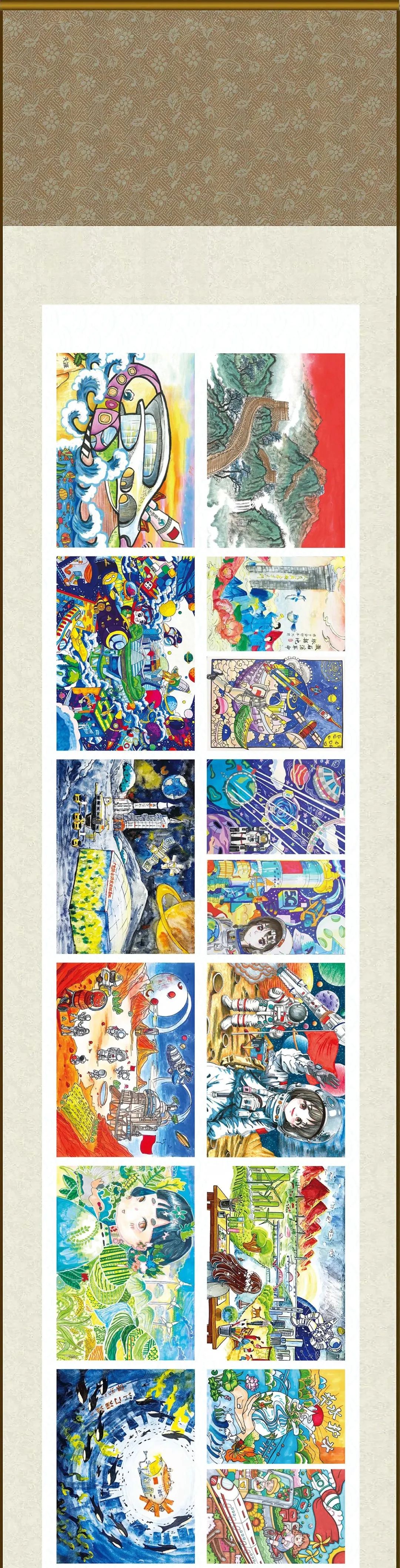 據(jù)介紹,本屆畫展主要有三大亮點(diǎn):一是主題鮮明,緊緊圍繞“孩子眼中的中國(guó)式現(xiàn)代化”,堅(jiān)持思想性、藝術(shù)性和創(chuàng)新性相統(tǒng)一,承載新時(shí)代青少年強(qiáng)國(guó)夢(mèng)想的長(zhǎng)卷在“天宮”徐徐展開,給人以強(qiáng)烈的精神感染和視覺沖擊;二是覆蓋面廣,作品出自31個(gè)?。ㄗ灾螀^(qū)、直轄市),以及香港、澳門特別行政區(qū)的青少年之手,彰顯全國(guó)各族人民對(duì)實(shí)現(xiàn)中國(guó)式現(xiàn)代化的共同期盼;三是文化味濃,畫卷用絲綢制作并于新春佳節(jié)之際在中國(guó)空間站展出,充分展現(xiàn)出現(xiàn)代科技與傳統(tǒng)文化的融合之美,使畫展更具中國(guó)特色、富有文化韻味。