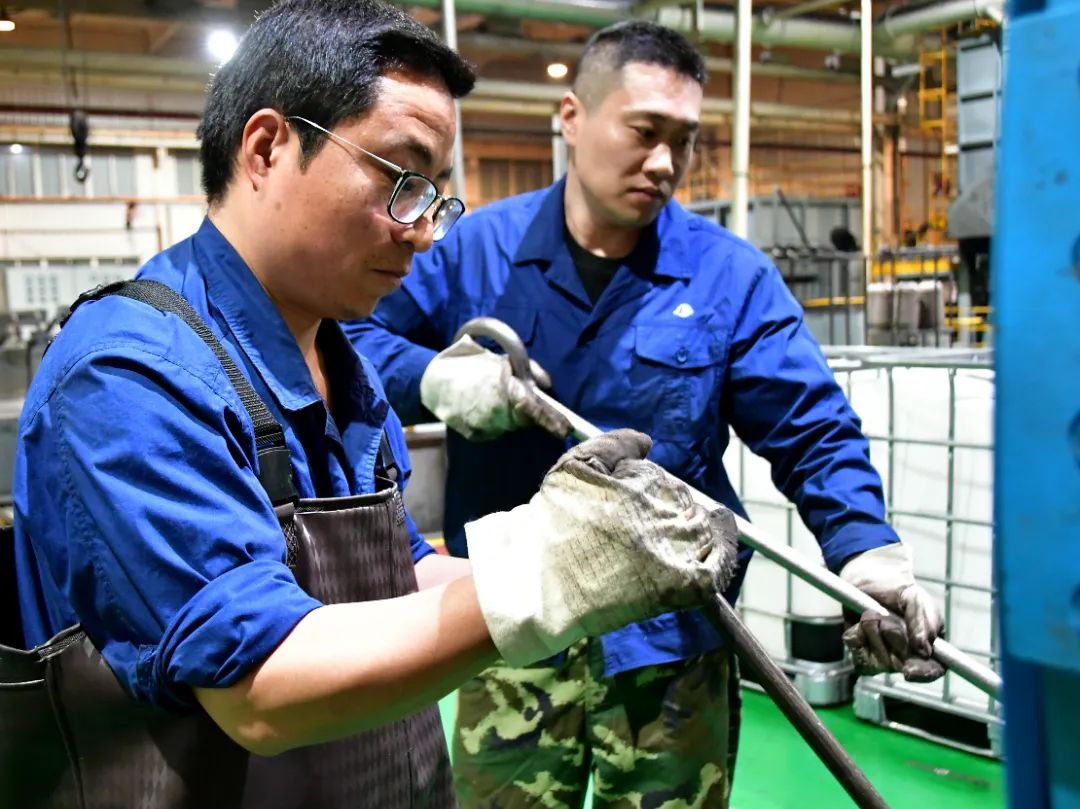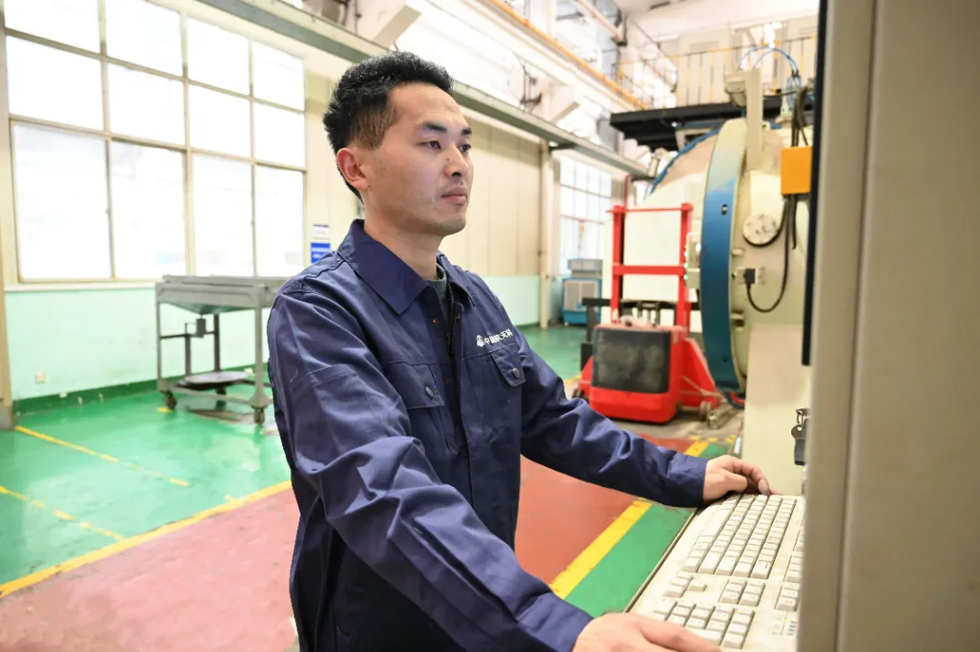 熱處理工序,作為金屬部件制造的“中轉(zhuǎn)站”,其過程具象難、結(jié)果測量難的特點,使得每一個參數(shù)狀態(tài)的微小偏差,都可能導致最終結(jié)果大相徑庭。然而,正是在這樣的挑戰(zhàn)中,紅陽公司特種制造部熱處理班組長、黨員胡文雄以“嚴慎細實”的工作作風,為班組的日常工作奠定堅實的基礎。