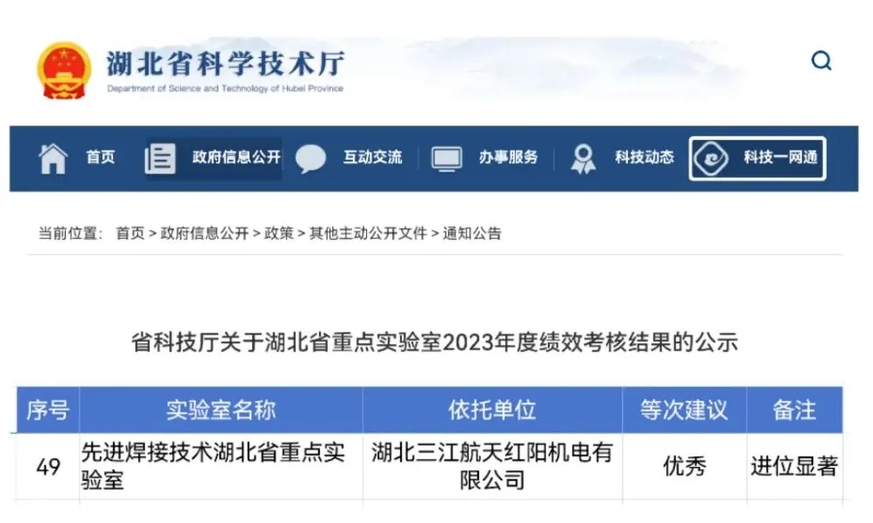 航天科工九院紅陽公司“先進焊接技術(shù)湖北省重點實驗室”全省考核獲評“優(yōu)秀”