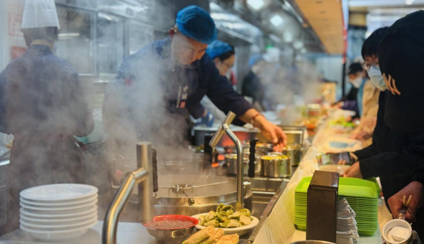 在運(yùn)營(yíng)方面,食堂深度融合數(shù)字化技術(shù),實(shí)現(xiàn)了武漢、孝感兩地“一卡通”消費(fèi),職工還可通過(guò)微信點(diǎn)餐,并選擇掃碼支付或刷臉支付,可有效縮短排隊(duì)等待時(shí)間。菜品與服務(wù)上,食堂力求從“吃飽”向“吃好”升級(jí),每周更新菜單,開(kāi)設(shè)自助餐、十元親民檔口、輕食減脂餐等,滿足多樣化飲食需求;延長(zhǎng)服務(wù)時(shí)間至晚上八點(diǎn)半,適配不同時(shí)段就餐需求;同時(shí)檔口實(shí)行“明廚亮灶”,嚴(yán)守食品安全底線,讓職工吃得放心。