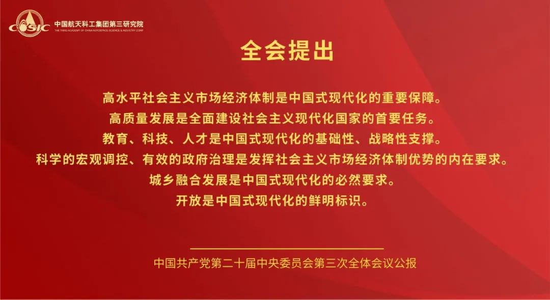 黨的二十屆三中全會(huì),是在以中國式現(xiàn)代化全面推進(jìn)強(qiáng)國建設(shè)、民族復(fù)興偉業(yè)的關(guān)鍵時(shí)期召開的一次十分重要的會(huì)議。航天三院黨委將學(xué)習(xí)好宣傳好貫徹好黨的二十屆三中全會(huì)精神作為當(dāng)前和今后一個(gè)時(shí)期的一項(xiàng)重大政治任務(wù),高度重視,迅速行動(dòng),引導(dǎo)三院全體黨員干部職工把思想和行動(dòng)統(tǒng)一到全會(huì)精神上來,把智慧和力量凝聚到落實(shí)全會(huì)精神和部署上來,聚焦主責(zé)主業(yè),履行強(qiáng)軍首責(zé),持續(xù)推動(dòng)飛航事業(yè)高質(zhì)量發(fā)展。