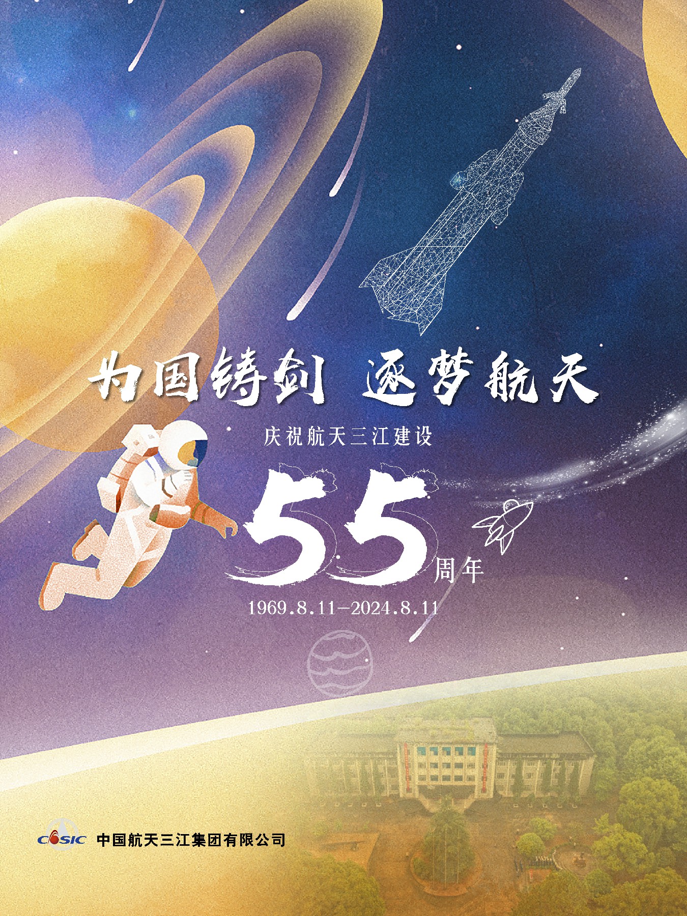 1969年8月11日,敬愛的周恩來總理親自批示“同意”建設(shè)066基地。這一天被正式確定為“航天三江建設(shè)紀(jì)念日”,2024年是航天三江建設(shè)55周年。在紀(jì)念日前夕,航天三江所屬各單位以多種方式回望那段崢嶸歲月,向老一輩三江人致敬,共同祝福航天三江在高質(zhì)量發(fā)展的新征程上揚(yáng)帆遠(yuǎn)航。