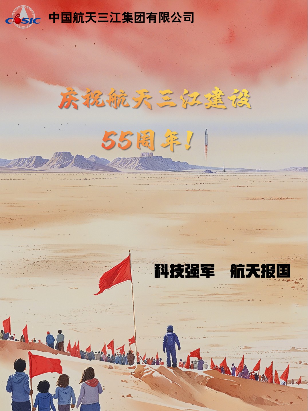 在慶祝航天三江建設(shè)55周年海報征集活動中,各單位踴躍參與繪制了46幅作品。一張張精美的海報生動展現(xiàn)了航天三江55年波瀾壯闊的輝煌歷程,深情表達(dá)了廣大職工對航天事業(yè)的無限熱愛,寓意寄托了對未來發(fā)展的美好期待。