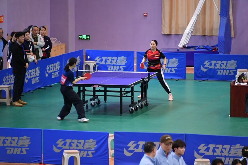 本次比賽分為男子團(tuán)體和女子團(tuán)體組,男子組共有17支代表隊(duì),女子組共有15支代表隊(duì),比賽采用團(tuán)體單打的形式進(jìn)行。球桌上,直拍橫拉、側(cè)旋擋球、上步搓球、側(cè)身進(jìn)攻、后退拉球、大力扣殺……選手們精湛的球技、奮勇拼搏的勁頭,讓比賽精彩紛呈;賽場外,熱烈的喝彩聲、整齊的加油聲,使整個活動中心熱鬧非凡。