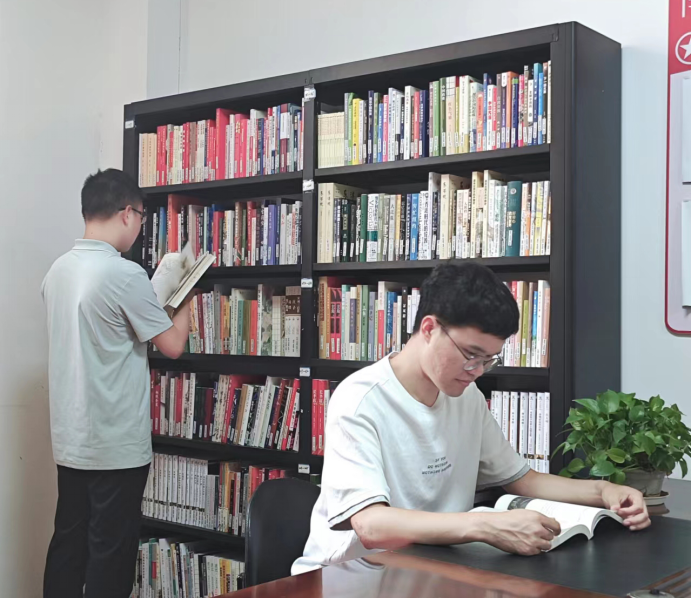 圖書角里,專業(yè)書籍、文學(xué)名著整齊排列,技術(shù)部門小李表示:“上次項目遇難題,來這里翻書找靈感,和同事一聊,思路就有了?!?/span>