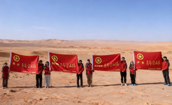 郭大勇在現(xiàn)場(chǎng)為4支青年突擊隊(duì)授旗。當(dāng)青年突擊隊(duì)的旗幟飄揚(yáng)在試驗(yàn)場(chǎng),青年們感到使命感在胸膛滾燙。耳畔是整齊響亮的誓言,身邊是并肩而立的伙伴,年輕的面龐充滿堅(jiān)毅。戈壁的夕陽(yáng)為獵獵旌旗鍍上金邊,青年的誓言與曠野的風(fēng)聲交織共鳴。旗幟不僅承載著信任與期望,更點(diǎn)燃了青年沖鋒的斗志。